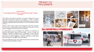 Nell’anno 2023, è stata avviata la sperimentazione di altri due sportelli in presenza: uno a Camposampiero presso la Biblioteca Comunale e un altro presso il Villaggio Sant’Antonio di Noventa Padovana.
